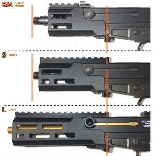 標準で延長ハンドガードを有するMod.MとMod.Dにも対応、その場合はショートハンドガードとなります。
