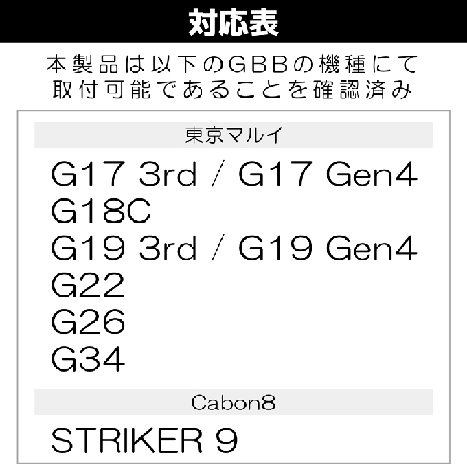 Carbon8製 STRIKER9などの、構造に互換性が有る製品にも対応します。