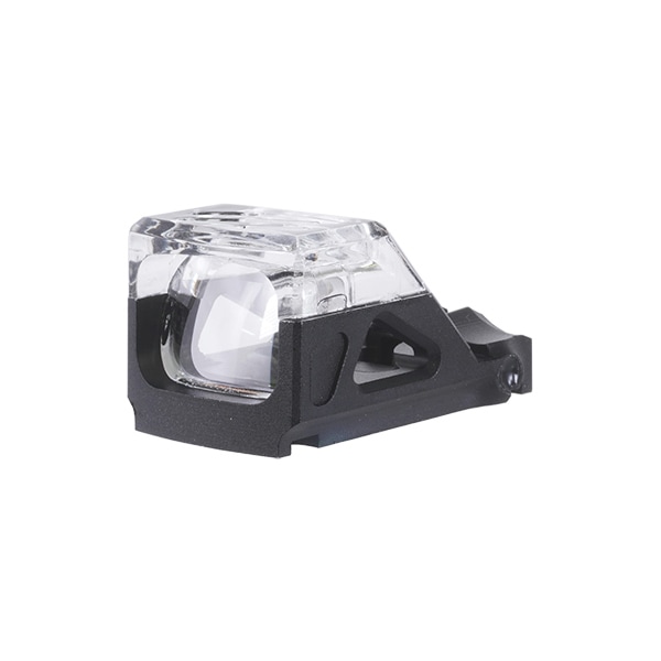 視界の上半分を囲むフレームがクリア素材になっている点が特徴のミニサイズドットサイトです。