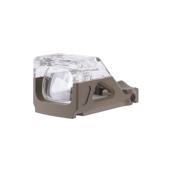 視界の上半分を囲むフレームがクリア素材になっている点が特徴のミニサイズドットサイトです。