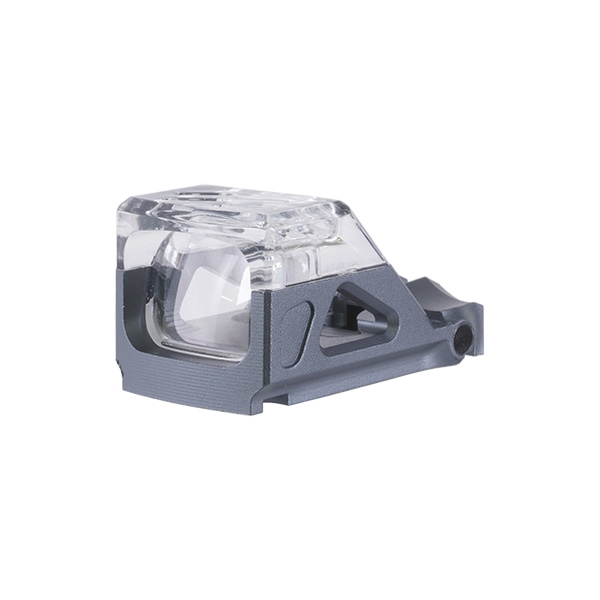視界の上半分を囲むフレームがクリア素材になっている点が特徴のミニサイズドットサイトです。