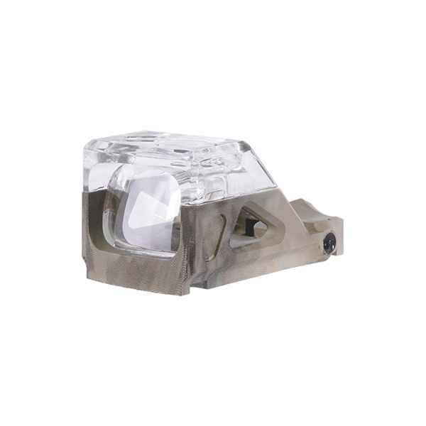 視界の上半分を囲むフレームがクリア素材になっている点が特徴のミニサイズドットサイトです。