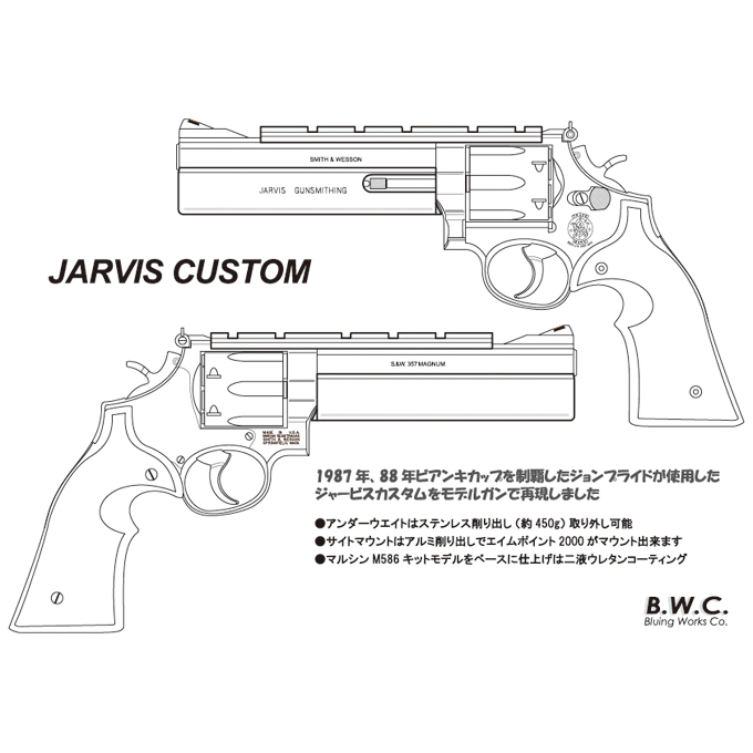 1980年代にS&W M586をベースに、ガンスミス ビル・ジャービス(Bill Jarvis)が手掛けたカスタムモデルを再現したモデルガンです。