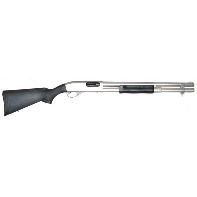 本モデルは海軍/海警など水辺で使用するユーザーからの要望に応えたサビに強い仕様で、ステンレス(本製品はアルミ合金に塗装)とブラックカラーのポリマー素材製ストック&フォアエンドのコントラストが魅力です。