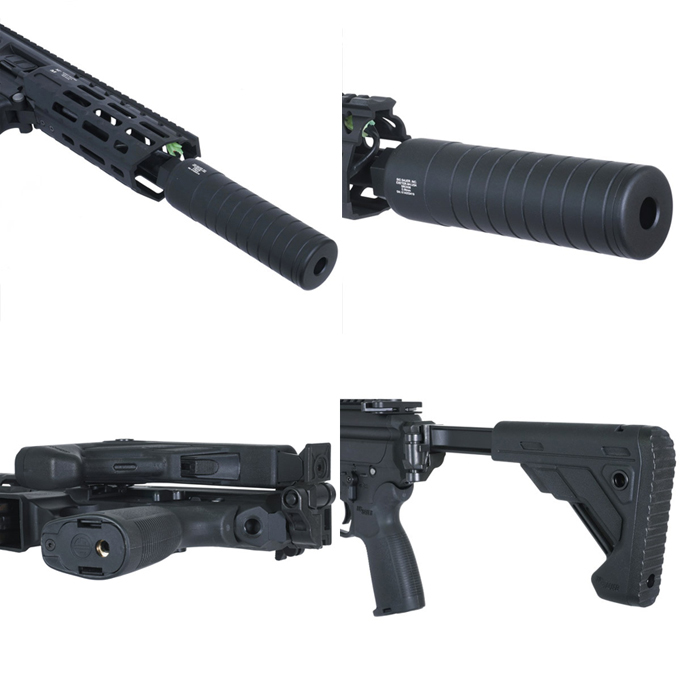 Midwestタイプ 6.5インチ M-LOKハンドガード、SIG SRDタイプダミーサプレッサー、SIGタイプの伸縮/折り畳み式ストックを装備したスタイルです。