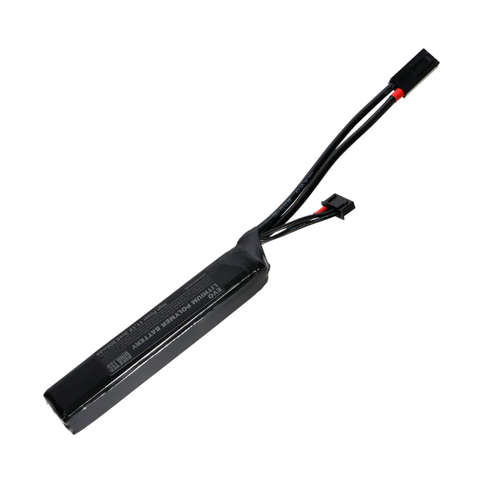 M4カービンのストックパイプ(バッファーチューブ)内に収容出来るサイズの、11.1Vリチウムポリマーバッテリーです。