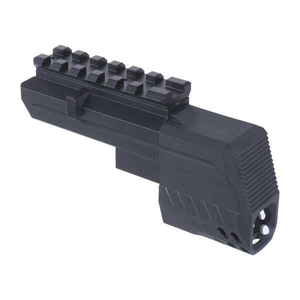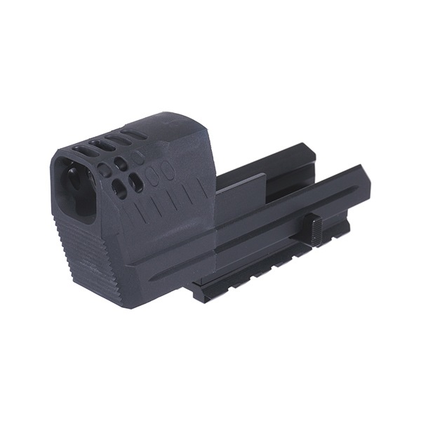 コンペンセイター下部に約20mm幅ピカティニー規格レールが有り、フラッシュライト等のアクセサリーが取り付け出来ます。