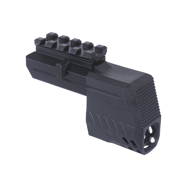 コンペンセイター下部に約20mm幅ピカティニー規格レールが有り、フラッシュライト等のアクセサリーが取り付け出来ます。