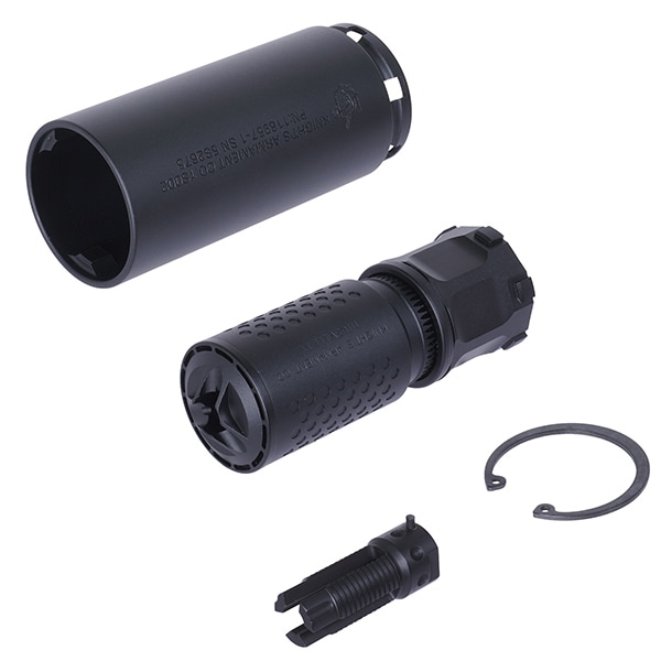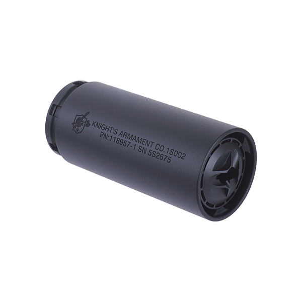 英国軍採用のKAC製 KS-1ライフルの装備するQDC/MCQ-PRTサプレッサーを再現しています。