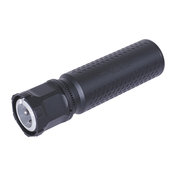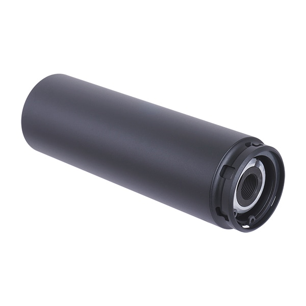14mm逆ネジ対応のスチール製フラッシュハイダーにアルミ合金製サプレッサーをかぶせて、基部のリングを締め込む事で固定されます。