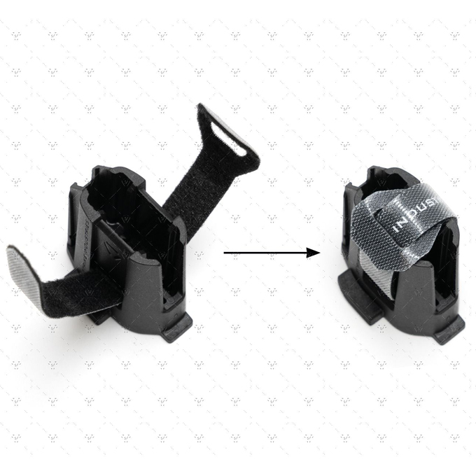 グリップ底の小物入れスペースを利用して、各社トラッカーを固定収容します。
