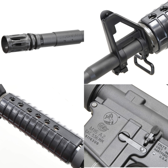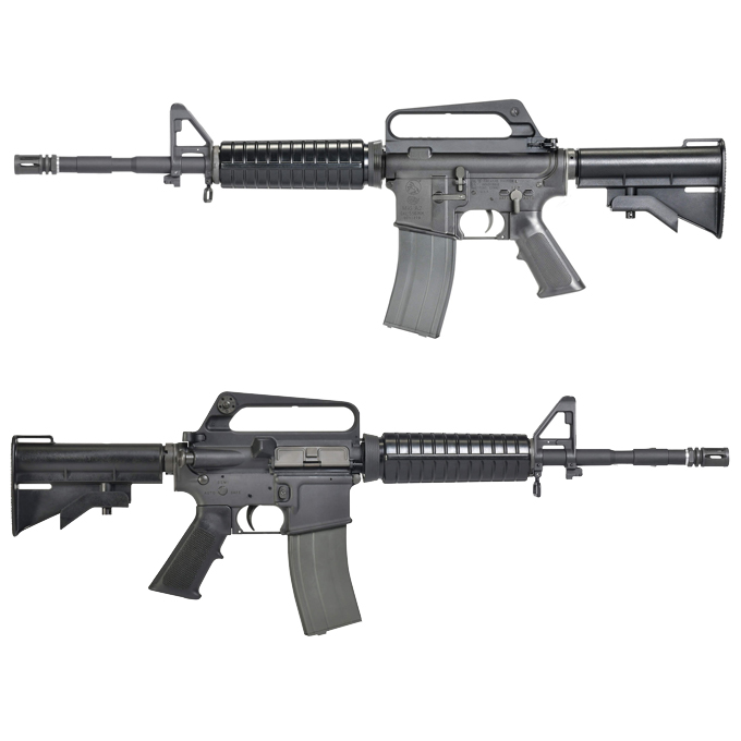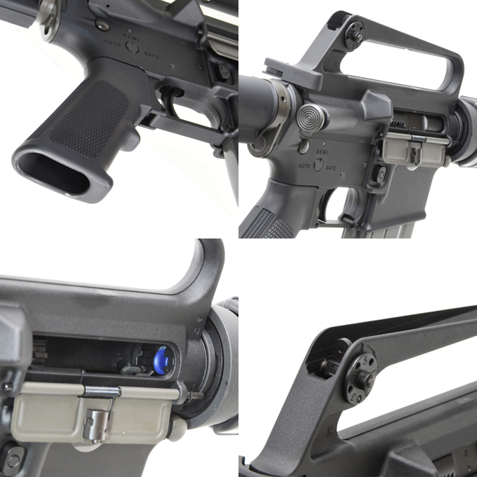 外観の特徴は、M16A2タイプの強化ロアレシーバー、M16A1タイプのアッパーの右面にケースデフレクターを追加、14.5インチバレルにはM203グレネードランチャー装着用のノッチが刻まれている点です。