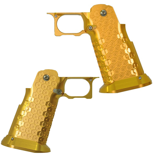 カスタムパーツ > グリップ・ストック類 > ハンドガン用 > マルイ ハイキャパシリーズ用 Infinityタイプ CNCアルミニウムグリップ Type12 /ゴールド [KW-KU-GB-620GD] [取寄]