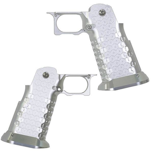 カスタムパーツ > グリップ・ストック類 > ハンドガン用 > マルイ ハイキャパシリーズ用 Infinityタイプ CNCアルミニウムグリップ Type12 /シルバー [KW-KU-GB-620SV] [取寄]