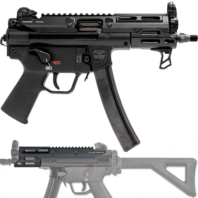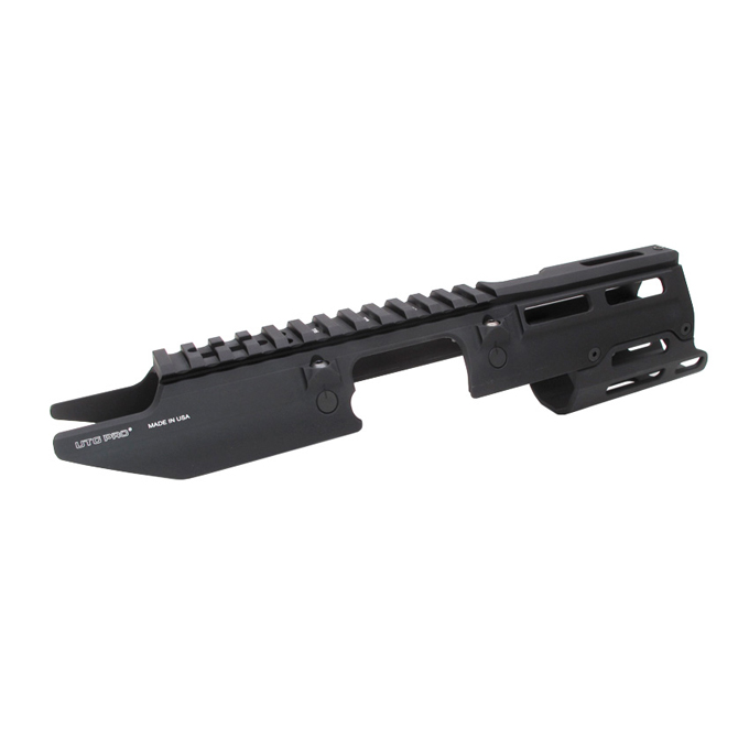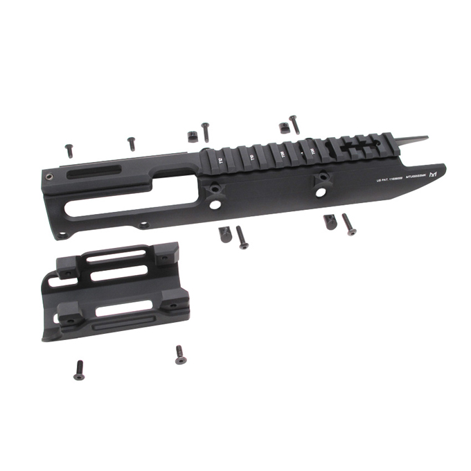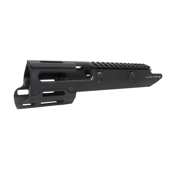 レシーバー上部はピカティニー規格レール、ハンドガードの周囲はM-LOK規格アクセサリー対応のスロットとなっています。