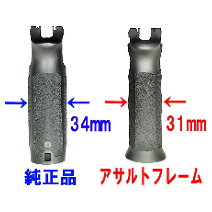 グリップ幅を34mmから31mmに、ビーバーテイルを延長、トリガーガード下側付け根を深くして、さらにハイグリップを可能にしています。