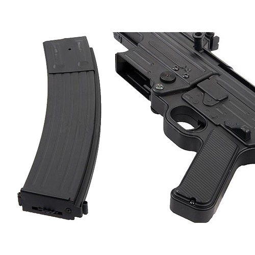 基本構造は、かつて松栄製作所が製造した電動ガンのコピー品で、セレクターの動きが実銃とは異なるスライド式であるなどの難点もそのままです。