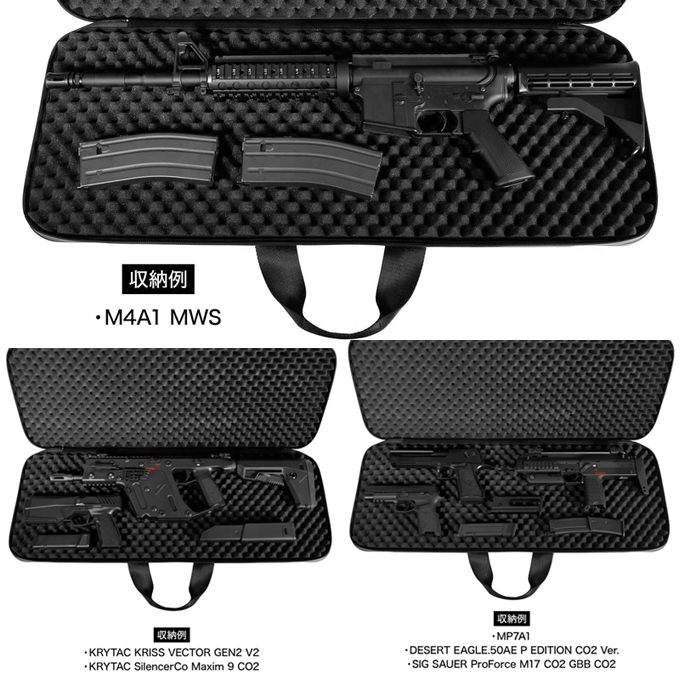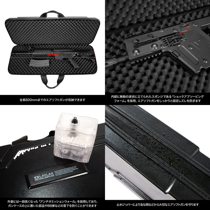 全長800mmまでのエアソフトガンの収納と持ち運びを安全快適に行える、軽量なセミハードタイプのガンケースです。