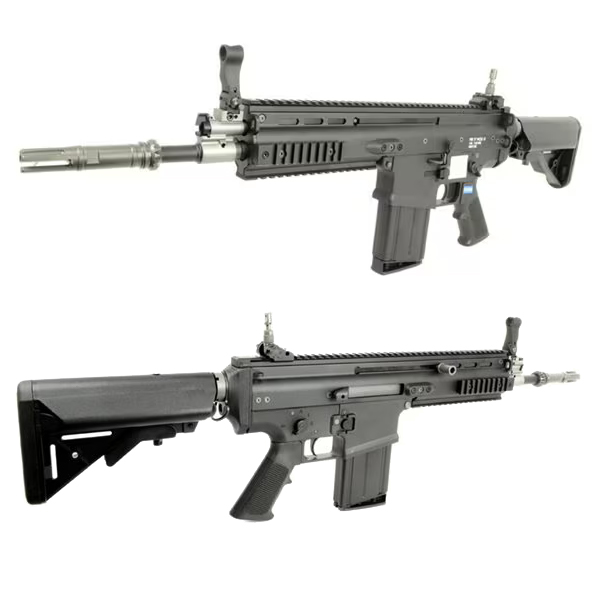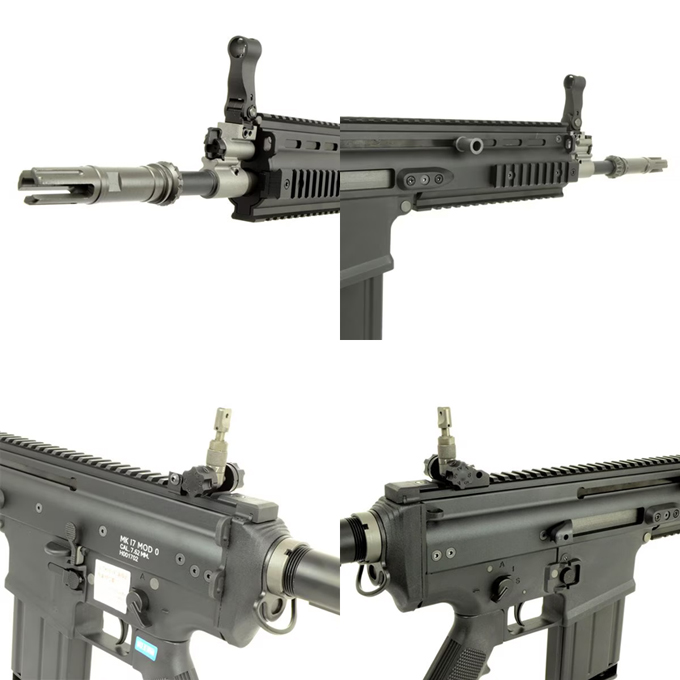 ベルギー FN社が2000年代初頭の米軍U.S.SOCOMが行った、制式ライフル/カービンの更新トライアルの為に開発されたSCARシリーズの、7.62mmNATO弾仕様のSCAR-H(Mk17)を再現したガスブローバックガンです。
