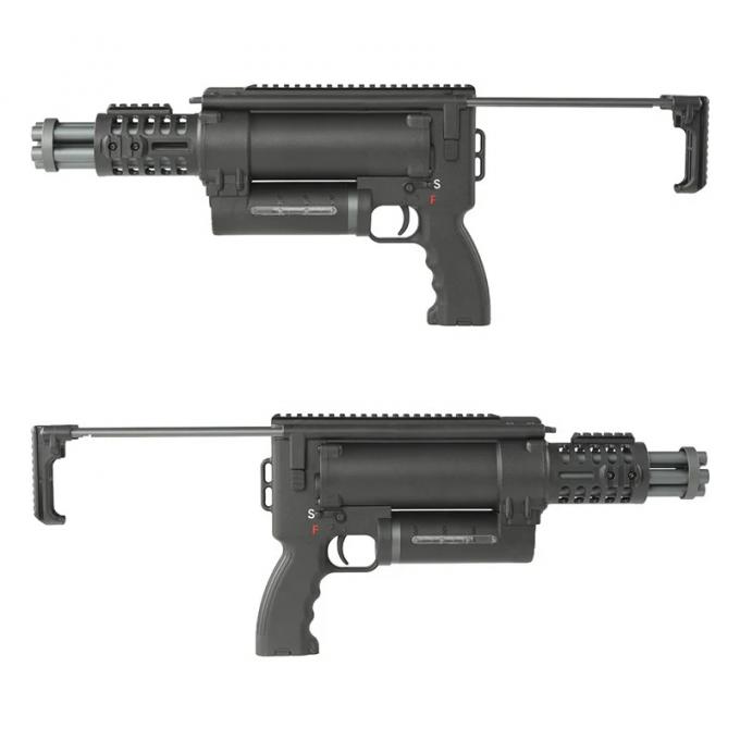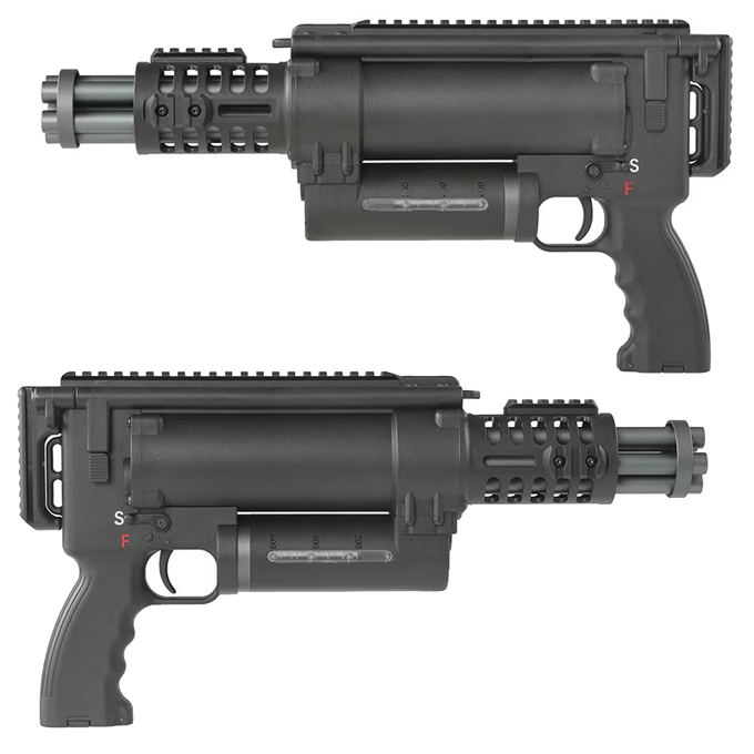 コンパクトモデルはさらなるサイズダウンを敢行、ピストル感覚とまではいきませんが、スタンドアロングレネードランチャーの様なサイズ感となっています。