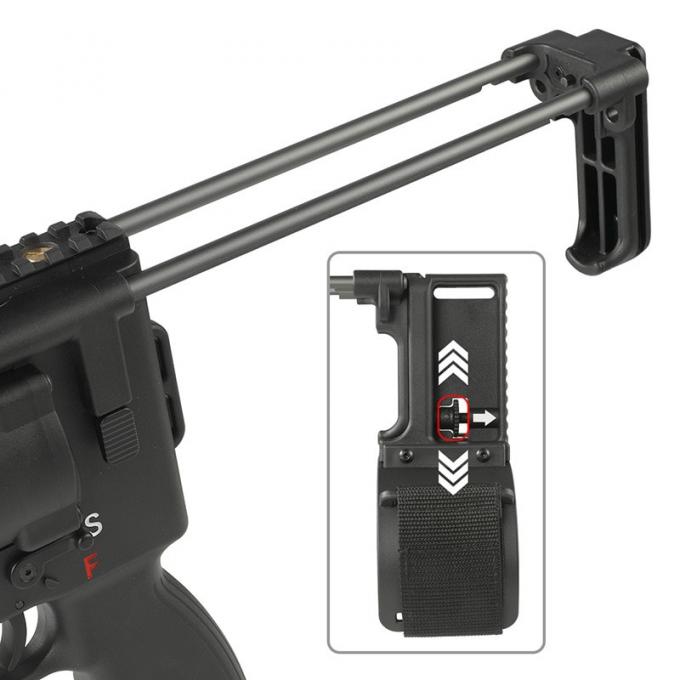 伸縮式ストックのバットプレート部にアームブレイスを追加すれば、片手撃ちも楽々です。