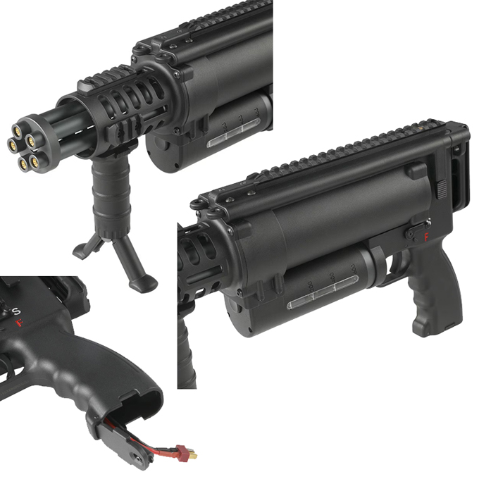 5本のバレルが回転して秒間35発の発射ギミックを再現しつつ、通常の電動ライフルのサイズ・重量感となっています。