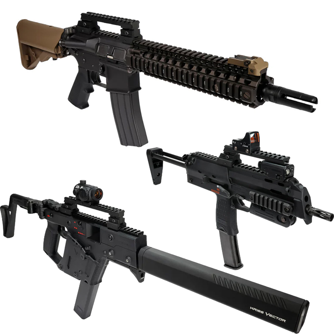 スコープ、ドットサイトの搭載位置を上げる事で照準を行いやすくします。