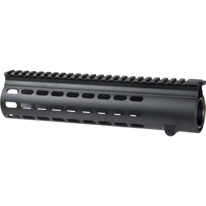 標準のハンドガードや他社製品と比較して、シンプルで細身な円筒形状、多数開けられた放熱口、独自規格による拡張レールなど、独自性が強いアイテムです。