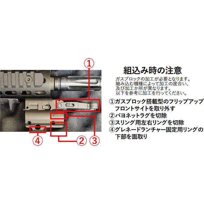 ※実物と同じく、HK416D標準のガスブロックを加工して取り付ける必要があります。