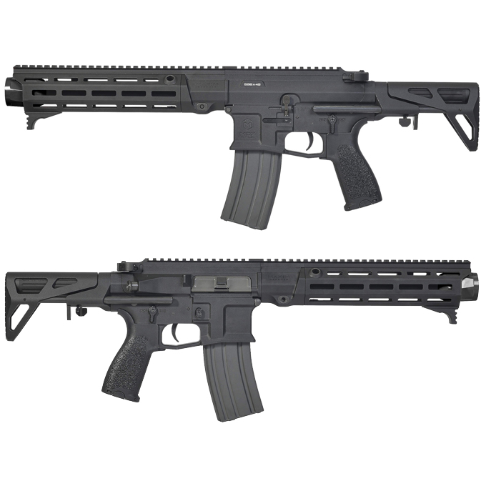 アサルトライフルの機関部にショートバレル+制音・制炎デバイス、M-LOK規格アクセサリー対応ハンドガード、ショートストックを組み合わせた、近接戦闘用モデルです。
