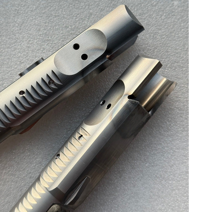 トキャリアにクロムモリブデン鋼AISI 4140を使用、ボルトキャッチと接触する部分は焼き入れ処理で強度をアップさせています。
