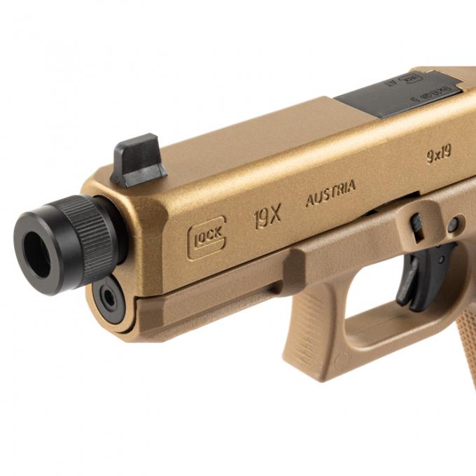 グロックシリーズの新機軸として誕生したG19Xの特別仕様を再現したCO2ミニボンベ仕様ガスブローバックガンです。