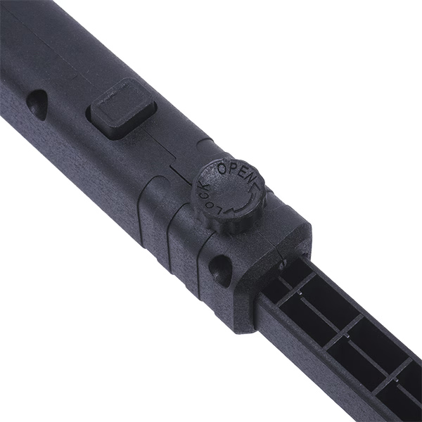 脚部は引き出す際にスプリングを圧縮、ロックボタンを押すとスプリングの力で元に戻ります。