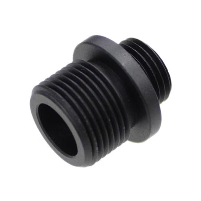 ハンドガンのアウターバレル先端内側に切られた11mmネジに取り付ける、14mm逆ネジ変換アダプターです。