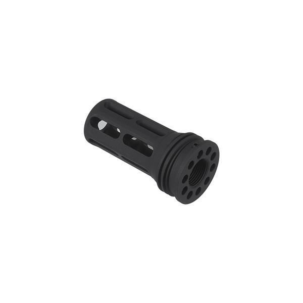 14mm逆ネジ対応フラッシュハイダーとサプレッサーの組み合わせで、接合部が逆ネジとなっている「トルクロック」を模した着脱機能を再現しています。