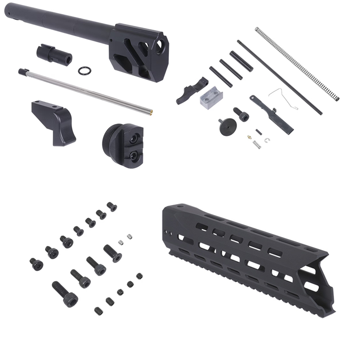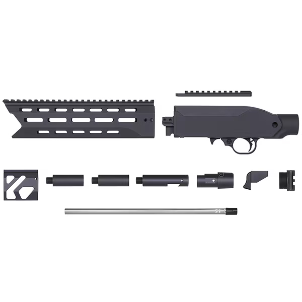 DXタイプは、KJワークス純正の機関部が付属しており、本キットの他にマガジン、実銃もしくはガスブローバックガンAR15用グリップ、リアルピッチのAR15カービン用バッファーチューブ、もしくはピカティニー規格レール対応ストックが必要になります。