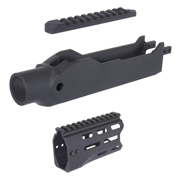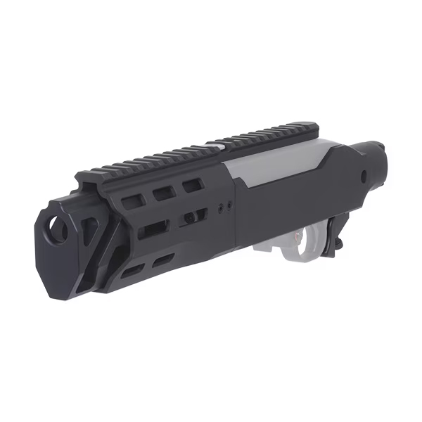 標準のフレームを覆う拡張ボディと、そこに連結するハンドガードの基本構成になっています。