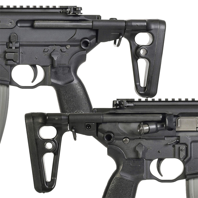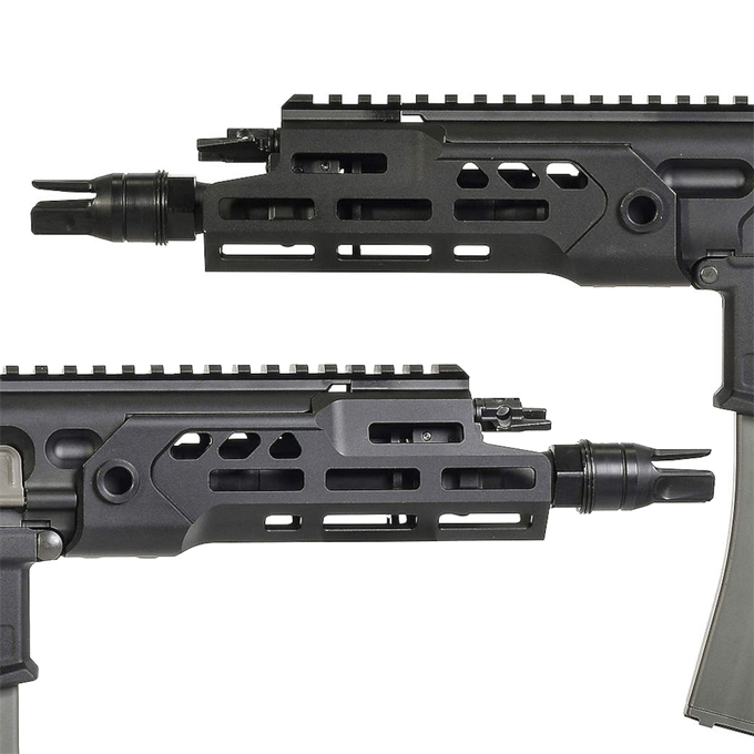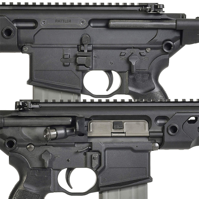 ハンドガードをSPEAR LTに準じたものに変更して拡張性の向上とサプレッサー装着を前提に、ボルトリリースのアンビ化を行っています。