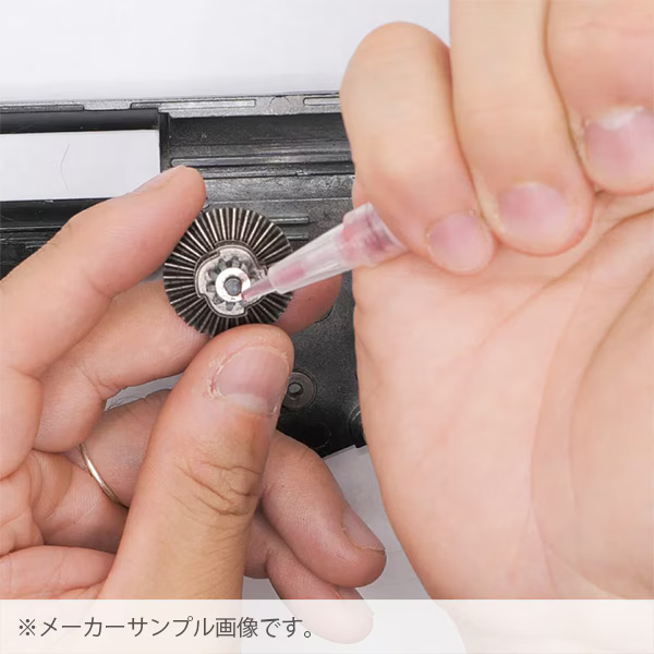金属x金属、金属x樹脂の接触部分に効果を発揮する成分となっており、ガスブローバックガンのスライドレールやハンマーシア、電動ガンのベアリング軸受けなどに有効です。