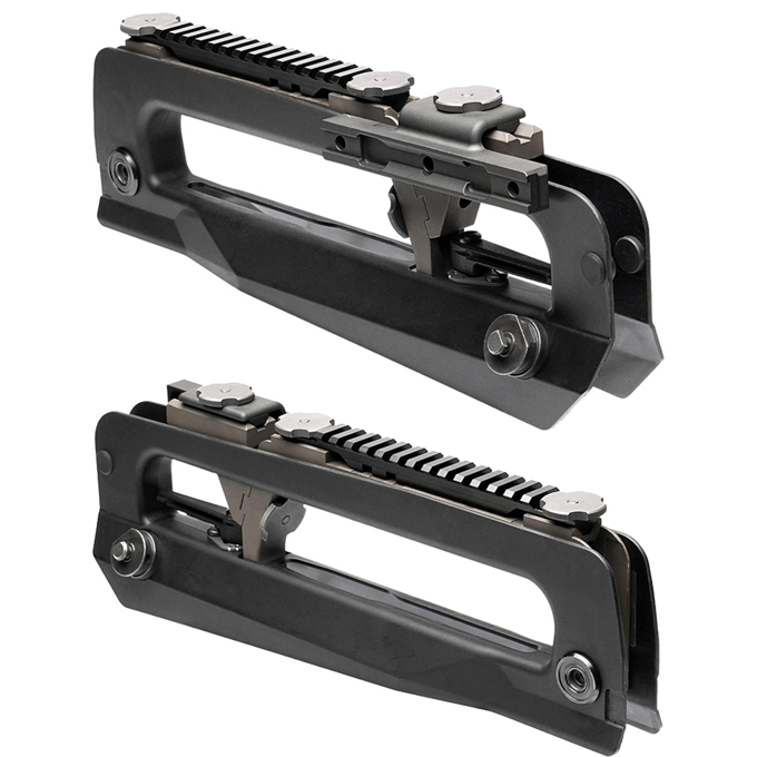 上部にはピカティニーレール、Aimpointマウント、SCROME J4F1インターフェースの装着が可能です。