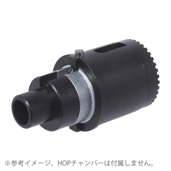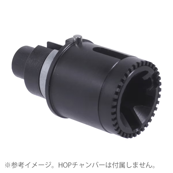 本商品は、押しゴム(HOPテンショナー)を利用できる様に設計されたHOPアームと、エジェクションポートから操作が可能なHOP調整ダイアルが備わったバレルエクステンションのセットです。