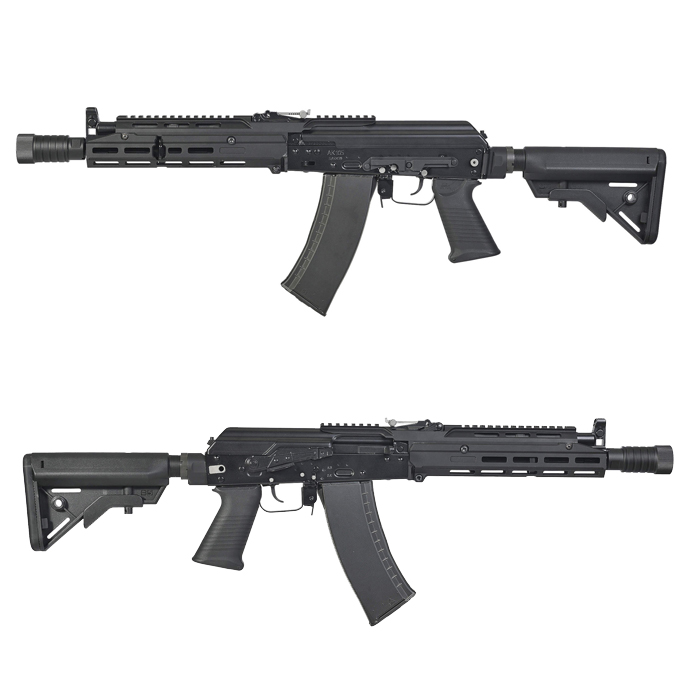 AK74Mのカービンサイズモデルの位置付けのAK105の、拡張外装を装着したスタイルを再現したガスブローバックガンです。